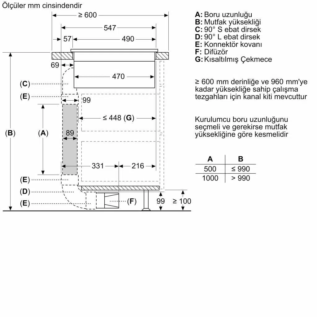 Montaj için minimum yükseklik